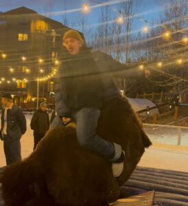 To close out the day Malachi, my friend Jack, and I headed to the mechanical bull. Jack had also crashed hard, so both of my friends were walking like they fell down a flight of stairs. Non the less, we rode the MECHANICAL BISON and had the best time ever. If you and your friends are looking for a guaranteed awesome ski weekend, buy a ticket to participate in one of the most legendary events ever created in skiing. If you can’t go, you lose $25. If you can go, you gain some memories that will last forever.